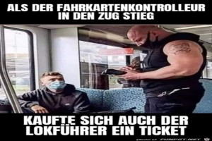 | Lokführer kaufte auch Zugticket Bild (108.17 KB) 7Lustiges → witzige Bilder | Lustiges → witzige Bilder | 14.11.20-09:43 | ||