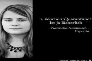 | Die Expertin über Quarantäne Bild (43.44 KB) 4Lustiges → witzige Bilder und Corona Jemand hatte mir geschrieben, dass dieses Bild geschmacklos ist. Ich hatte mir tatsächlich überlegt, ob ich dieses Bild einstelle. Wäre es nicht die Kampusch, sondern ein anderes Opfer, dann hätte ich es auch nicht getan. Aber sie hatte eine eigene Talkshow und eine Autobiografie... zum Blog | Lustiges → witzige Bilder und Corona | 14.11.20-09:43 | Niklas | |