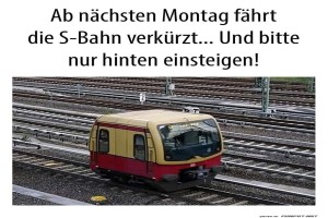 | S-Bahn verkürzt: Nur hinten einsteigen! Bild (143.29 KB) 6Lustiges → witzige Bilder | Lustiges → witzige Bilder | 14.03.-07:35 | Marika | |