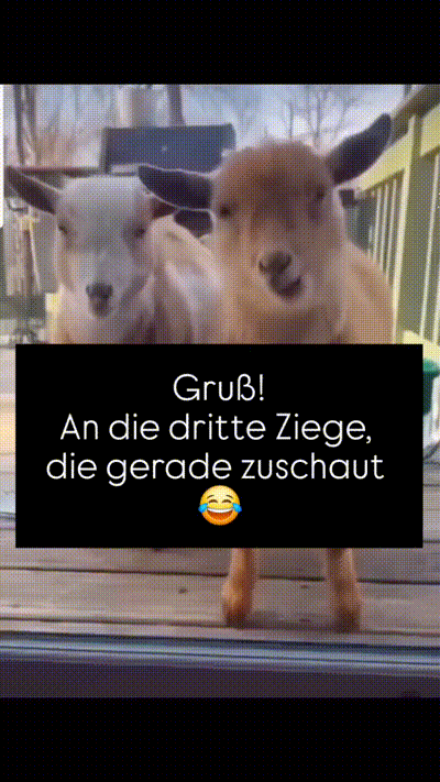 | Gruß an die dritte Ziege Bild (1.2 MB) 3Lustiges → witzige Bilder → animierte Bilder und Mit Tieren | Lustiges → witzige Bilder → animierte Bilder und Mit Tieren | 20.12.24-07:23 | Nicolas1995 | |