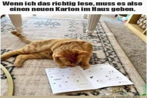 | Wo ist der neue Karton? Bild (161.95 KB) 18Lustiges → witzige Bilder und lustige Katzen | Lustiges → witzige Bilder und lustige Katzen | 26.09.24-08:25 | ||
