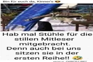 | Stühle für die stillen Mitleser Bild (80.73 KB) 1Lustiges → witzige Bilder | Lustiges → witzige Bilder | 11.08.24-09:37 | ||