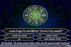 | Wer wird Millionär Bild (28.72 KB) 5Lustiges → witzige Bilder | Lustiges → witzige Bilder | 28.10.22-08:45 | ||