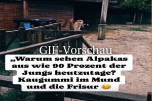 | Alpakas sehen lustig aus Bild (6.15 MB) 5Lustiges → witzige Bilder → animierte Bilder und Mit Tieren | Lustiges → witzige Bilder → animierte Bilder und Mit Tieren | 24.02.-05:57 | Eliano17 | |