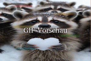 | Der Waschbär hat ein Herz für dich Bild (4.81 MB) 5Lustiges → witzige Bilder → animierte Bilder und Mit Tieren und süß, goldig, herzig, lieb | Lustiges → witzige Bilder → animierte Bilder und Mit Tieren und süß, goldig, herzig, lieb | 14.02.-10:54 | ||