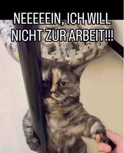 | Ich will nicht zur Arbeit Bild (1.95 MB) 7Lustiges → witzige Bilder → animierte Bilder und lustige Katzen | Lustiges → witzige Bilder → animierte Bilder und lustige Katzen | 05.02.-19:34 | ||