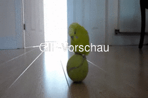 | Wellensittich auf Tennisball Bild (231.48 KB) 8Lustiges → witzige Bilder → animierte Bilder und Mit Tieren | Lustiges → witzige Bilder → animierte Bilder und Mit Tieren | 01.04.21-07:40 | ||