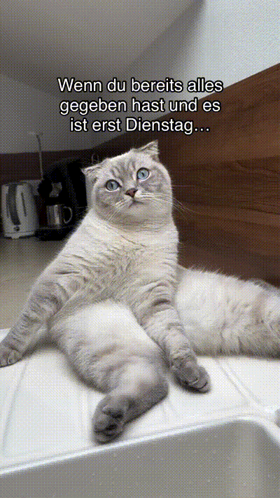 | Bereits alles gegeben Bild (3.81 MB) von Carina92 am 26. Oktober 2024 um 07:00 Uhr Lustiges → witzige Bilder → animierte Bilder und lustige Katzen | Lustiges → witzige Bilder → animierte Bilder und lustige Katzen | 26.10.24-07:00 | Carina92 | ||