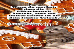 | Butter ist teuer Bild (2.12 MB) 3Lustiges → witzige Bilder → animierte Bilder und lustige Katzen | Lustiges → witzige Bilder → animierte Bilder und lustige Katzen | 15.10.24-08:49 | Christina | |