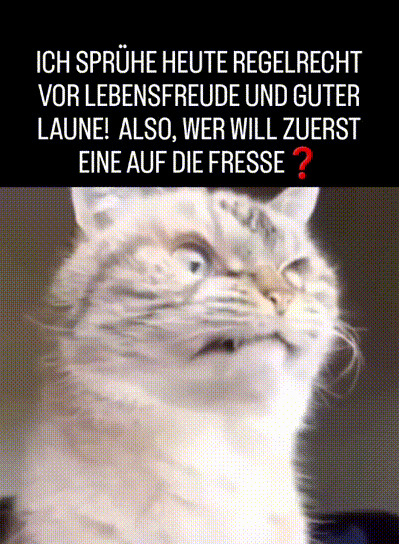 | Totale Lebensfreude Bild (1.16 MB) 1Lustiges → witzige Bilder → animierte Bilder und lustige Katzen | Lustiges → witzige Bilder → animierte Bilder und lustige Katzen | 02.07.24-12:39 | Miles1990 | |