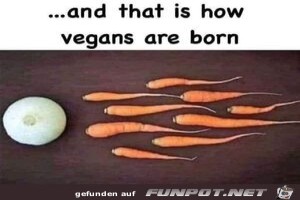 | Wie Veganer geboren werden Bild (22.62 KB) Lustiges → witzige Bilder → in Englisch Vegan, vegetarier, gemüse, lustig | Lustiges → witzige Bilder → in Englisch | 10.05.22-18:52 | Brenda | ||