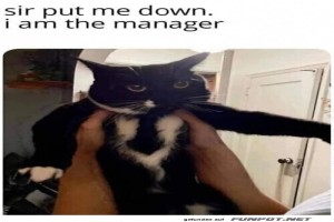 | Lass mich runter ich bin der Manager Bild (40.15 KB) 4Lustiges → witzige Bilder → in Englisch und lustige Katzen | Lustiges → witzige Bilder → in Englisch und lustige Katzen | 26.03.24-09:32 | Pfahl | |