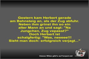 | Gestern kam Herbert gerade am Bahnsteig an Bild (37.66 KB) 4Lustiges → klasse Sprüche und Witze | Lustiges → klasse Sprüche und Witze | 15.12.-18:05 | ||
