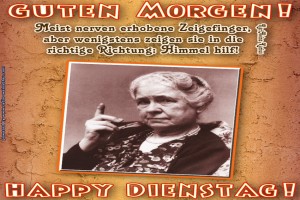 | Oma's Ratschläge für den Dienstagmorgen! Bild (644.04 KB) 2Herziges → guten-Morgen-Bilder → Dienstag Guten Morgen | Herziges → guten-Morgen-Bilder → Dienstag | 15.02.-00:47 | ||