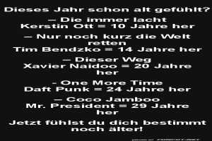 | Musikerfolge, die uns älter fühlen lassen Bild (110.87 KB) 5Lustiges → klasse Sprüche und Witze | Lustiges → klasse Sprüche und Witze | 21.03.-10:48 | ||