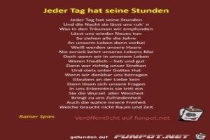 | Jeder Tag hat seine Stunden Bild (25.78 KB) 3Herziges → Nachdenkliches und Gedichte | Herziges → Nachdenkliches und Gedichte | 30.03.22-14:21 | ||