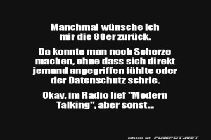 | Ich wünsche mir die 80er Bild (56.27 KB) 6Lustiges → klasse Sprüche und Witze | Lustiges → klasse Sprüche und Witze | 31.08.24-17:27 | ||