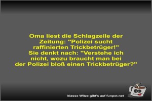 1 | ![]() ![]() ![]() | Oma liest die Schlagzeile der Zeitung Bild (31.35 KB) 1Lustiges → klasse Sprüche und Witze | Lustiges → klasse Sprüche und Witze | 06.01.-15:00 | Fossy | |