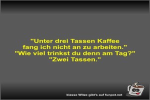 ![]() ![]() ![]() | Unter drei Tassen Kaffee fang ich nicht an zu arbeiten Bild (23.98 KB) von Fossy am 26. März 2026 um 17:02 Uhr Lustiges → klasse Sprüche und Witze | Lustiges → klasse Sprüche und Witze | heute-17:02 | Fossy | ||