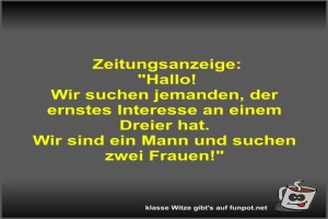 ![]() ![]() ![]() | Zeitungsanzeige Bild (31.74 KB) von Fossy am 08. Dezember 2025 um 10:32 Uhr Lustiges → klasse Sprüche und Witze | Lustiges → klasse Sprüche und Witze | 08.12.-10:32 | Fossy | ||