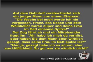 4 | ![]() ![]() ![]() | Auf dem Bahnhof verabschiedet sich ein junger Mann von... Bild (58.67 KB) 4Lustiges → klasse Sprüche und Witze | Lustiges → klasse Sprüche und Witze | heute-11:24 | Fossy | |