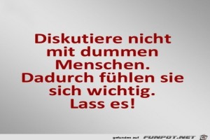 | Nicht mit dummen Menschen diskutieren Bild (53.37 KB) 3Herziges → Sprüche | Herziges → Sprüche | 09.09.23-09:45 | ||