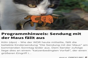 | Die Maus Bild (355.71 KB)  6Lustiges → witzige Bilder und lustige Katzen Maus, wdr, sendung mit der maus, katze  | Lustiges → witzige Bilder und lustige Katzen | 12.07.22-18:55 | ||
