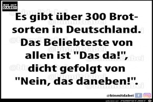 | Es gibt über 300 Brotsorten... Bild (101.93 KB) 7Lustiges → klasse Sprüche und Witze | Lustiges → klasse Sprüche und Witze | 26.02.21-16:17 | ||