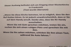 | Text am Eingang der Kirche Bild (73.34 KB) 9Lustiges → klasse Sprüche und Witze | Lustiges → klasse Sprüche und Witze | 28.11.20-15:23 | ||