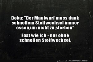 |  2 |       | Maulwurf und ich: Stoffwechsel-Drama Bild (84.61 KB)  2 Lustiges → klasse Sprüche und Witze | Lustiges → klasse Sprüche und Witze | 30.10.-14:20 | |