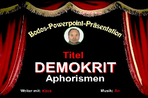 | DEMOKRIT Powerpoint (2.54 MB) 7Herziges → Sprüche "Viele, die man dafür hält, sind nicht unsere Freunde und viele, die man nicht dafür hält, sind es." Ich hoffe, dass ich das in meinem künftigen Leben nicht erfahren muss... | Herziges → Sprüche | 24.01.22-07:50 | ||