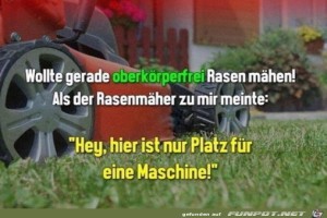 | Der Rasenmäher ist klasse Bild (83.08 KB) 6Lustiges → klasse Sprüche und Witze | Lustiges → klasse Sprüche und Witze | 20.05.22-08:38 | ||