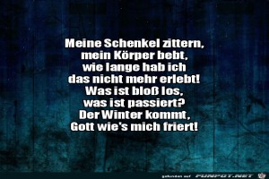 | Der Winter kommt Bild (124.48 KB) 1Lustiges → klasse Sprüche und Witze | Lustiges → klasse Sprüche und Witze | 21.11.23-14:55 | ||