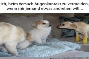 | Blickkontakt vermeiden Bild (70.69 KB) 3Lustiges → witzige Bilder und lustige Hunde | Lustiges → witzige Bilder und lustige Hunde | 14.11.23-09:20 | ||