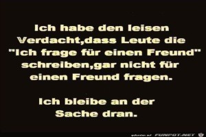 |  4  1 |       | Ich frage für einen Freund Bild (74.75 KB)  4  1 Lustiges → klasse Sprüche und Witze | Lustiges → klasse Sprüche und Witze | 17.01.24-08:58 | ||