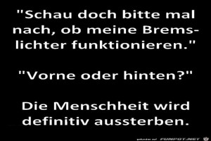 | Bremslichter kontrollieren Bild (36.33 KB) 2Lustiges → klasse Sprüche und Witze | Lustiges → klasse Sprüche und Witze | 12.03.24-05:48 | |