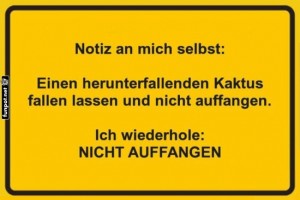 | Notiz des Tages: Keine Kakteen retten! Bild (147.36 KB) 3Lustiges → klasse Sprüche und Witze | Lustiges → klasse Sprüche und Witze | 07.07.-10:36 | ||