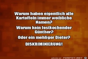 | Kartoffeln und weibliche Namen Bild (60.47 KB) 15Lustiges → klasse Sprüche und Witze | Lustiges → klasse Sprüche und Witze | 13.01.21-07:56 | ||