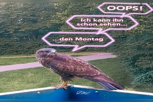 | Vogel Bussard Gruß Montag Bild (8.04 MB) 6Lustiges → witzige Bilder und Mit Tieren Ein Mäusebussard auf meinem Balkon. Ich kann den Montag schon sehen. | Lustiges → witzige Bilder und Mit Tieren | 11.08.24-17:20 | ||