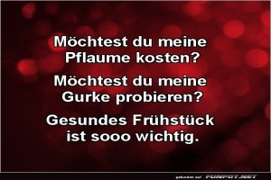 | Humorvolles Angebot für ein gesundes Frühstück Bild (103.04 KB) 4Lustiges → klasse Sprüche und Witze | Lustiges → klasse Sprüche und Witze | 09.05.-13:50 | ||