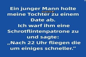 | Vater-Witz über Tochter und Date Bild (29.16 KB) 3Lustiges → klasse Sprüche und Witze | Lustiges → klasse Sprüche und Witze | 09.04.-11:47 | ||
