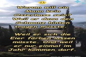 | Warum Männer keine Osterhasen sein wollen Bild (435.59 KB) 7Lustiges → klasse Sprüche und Witze | Lustiges → klasse Sprüche und Witze | 06.04.-21:39 | ||
