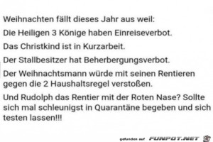 | Weihnachten fällt aus Bild (42.34 KB) 34Lustiges → klasse Sprüche und Witze und Corona | Lustiges → klasse Sprüche und Witze und Corona | 16.11.20-13:53 | ||