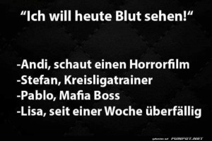 | Verschiedene Szenarien für blutige Absichten Bild (59.55 KB) Lustiges → klasse Sprüche und Witze | Lustiges → klasse Sprüche und Witze | 25.04.-08:03 | |||