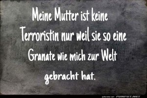 | Meine Mutter ist keine Terroristin Bild (104.92 KB)  1Lustiges → klasse Sprüche und Witze  | Lustiges → klasse Sprüche und Witze | 20.02.-22:10 | ||