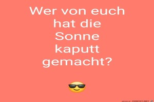 | Sonne kaputt Bild (133.66 KB) 2Lustiges → klasse Sprüche und Witze Sonne kaputt | Lustiges → klasse Sprüche und Witze | 17.03.22-10:33 | ||