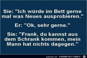 | Ich würde im Bett Bild (27.7 KB) 5Lustiges → klasse Sprüche und Witze | Lustiges → klasse Sprüche und Witze | 19.10.22-18:45 | ||