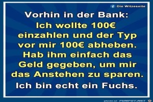 | Vorhin in der Bank Bild (84.36 KB) 6Lustiges → klasse Sprüche und Witze | Lustiges → klasse Sprüche und Witze | 19.10.22-18:45 | ||