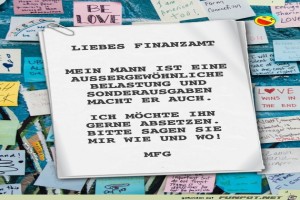 | Liebes Finanzamt Bild (123.49 KB) 3Lustiges → klasse Sprüche und Witze | Lustiges → klasse Sprüche und Witze | 05.05.21-20:33 | ||