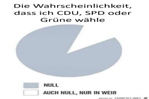 | Die Wahrscheinlichkeit, dass ich CDU, SPD oder Grüne wähle Bild (57.11 KB) 3Lustiges → witzige Bilder Wer die wählt sagt "alles richtig gemacht, bitte weiter so!" Das wollen wir aber nicht, oder? Deshalb den wahlomat.de benutzen und neuen Parteien die Chance geben was zu ändern! | Lustiges → witzige Bilder | 22.09.21-16:22 | ||